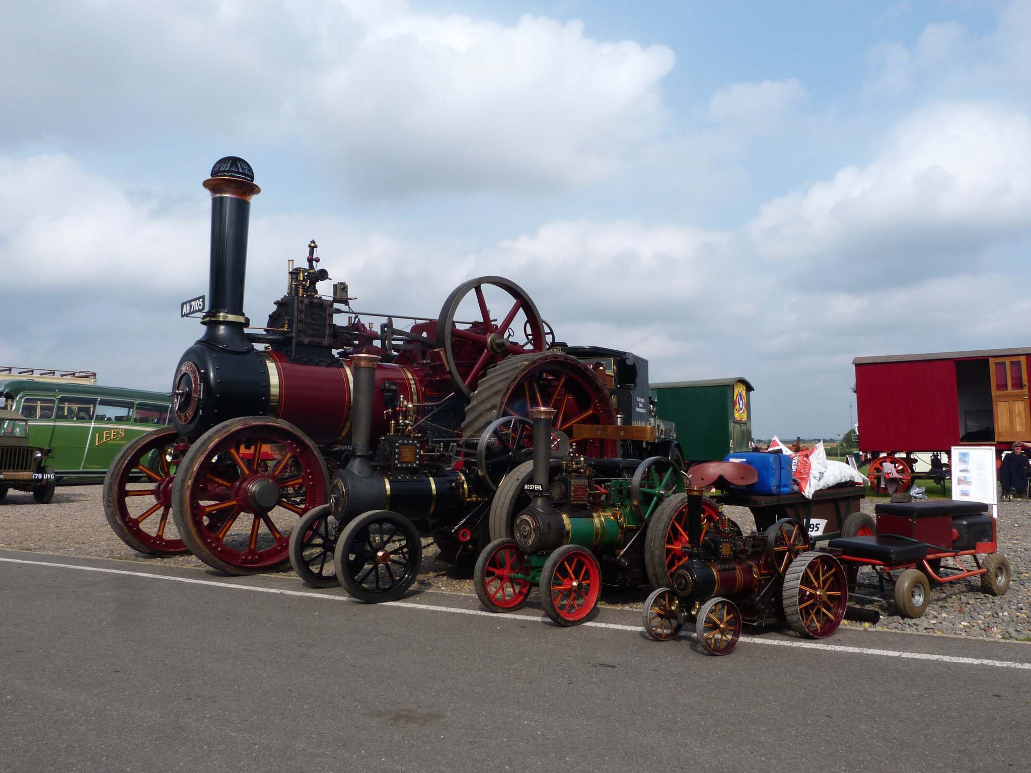 We were lucky enough to get an invite to exhibit our family 6" (half scale) Burrell traction engine called "Half Pint" for the weekend. Our engine was built to the Plastow drawings by a good friend in 2009 and it is based on an early Burrell general purpose engine from around 1900. At the show there was a similar full-size Burrell, works number 2507 "Pride of Monewden" from 1902 and also two other models based on the Plastow drawings, a 4.5" (37.5%) and a 3" (1/4 scale). It isn't just model aircraft that get built to different scales.
