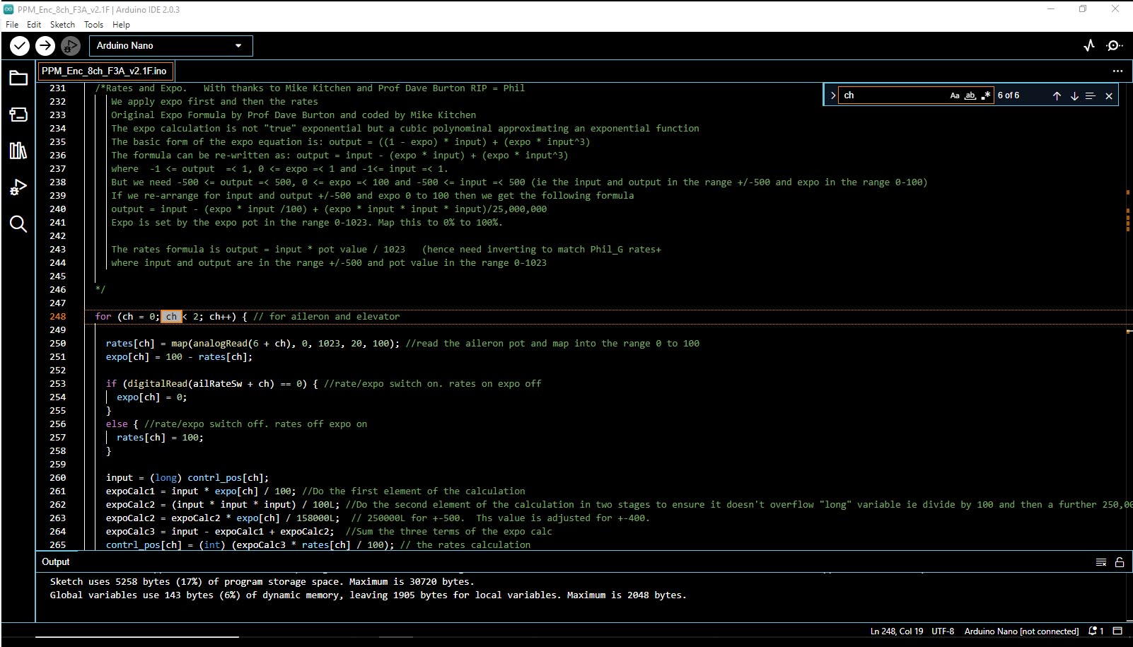 I had never tried compiling the encoder sketch with the latest Arduino 2.03 as I've stuck with the older 1.8.19 as the latest version just takes so long to fire up compared to 1.8.19 (and I have a reasonably fast i7 SSD PC). So I fired up 2.03, and it compiled PPM_Enc_8ch_F3A_v2.1F without a problem (see screenshot below).