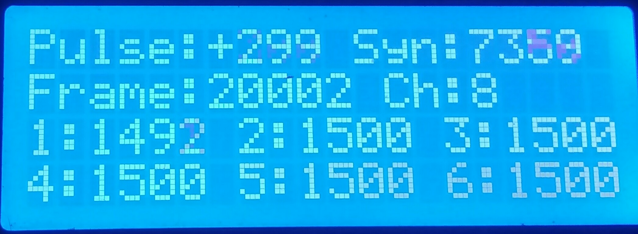 Phil_G wrote:...element 8 is the sync time which of course is the 20ms frametime minus all the current channel widths, then doubled