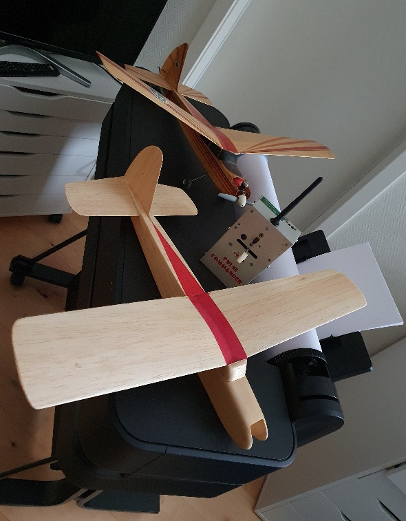 Size wise the wing span will be 80 cm and a CD-rom motor of some kind will do. If I get the time I will have them to wind their own motors! I was considering also 2 Cox BabyBee .049 with spring start but that would require some more considerations on the finish as at now almost anything would do like a can of hairspray.