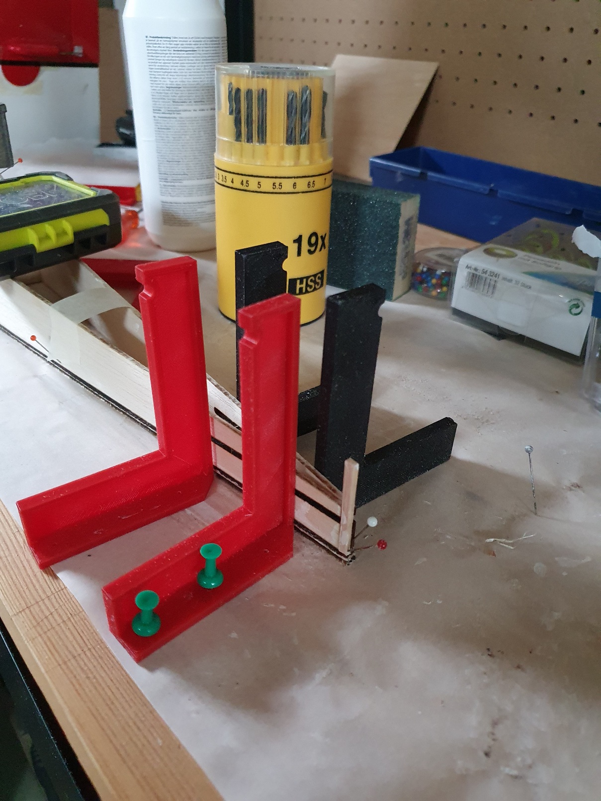 Let me also introduce you to my "squaring tools" which are quite helpful as they can be anchored with a few Pons if necessary. I print a few every time I'm coming to the end of a filament roll in different sizes.