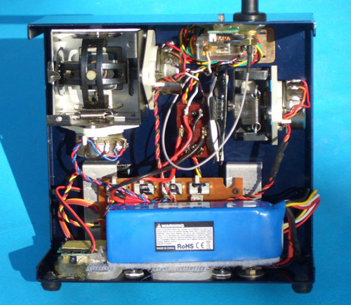 as received: converted to 2.4 - changed to mode 1 so the left stick is now centering and the right stick is ratcheted for throttle: original internals: converted internals - uses a Futaba encoder from an 'Attack 4' (conversion predates availability of Phil's encoder) and a Frsky module: stick unit - I think I swapped out the simple springs on this: ball joint - in these stick units, the casing is often cracked, so it needed to be wrapped in heavy duty thread and epoxied: Also found this pic of a NIB example: