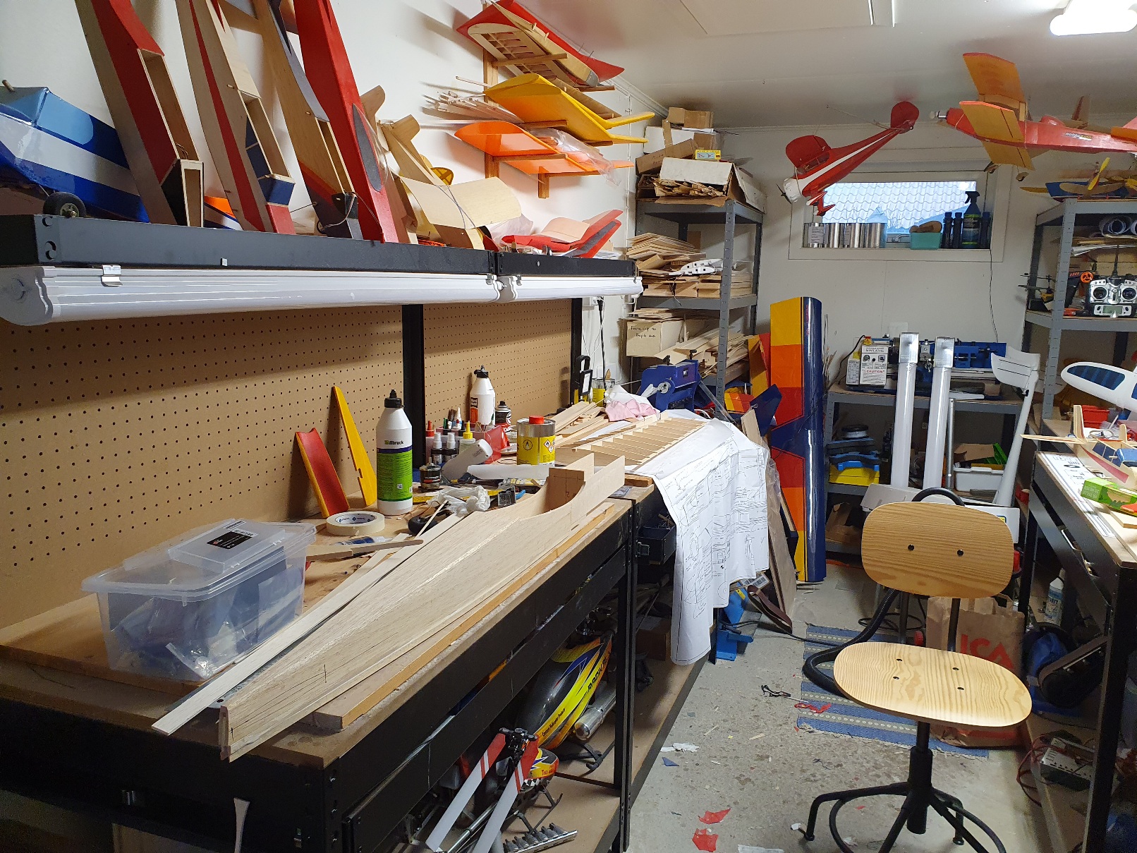 Not much done in the Skunkworkshop as radio wise but I have been quite proactive reducing the size of large piece of balsa to small ones that when glued together might look like a model airplane, I have realized that every time I build an airplane my shop shrinks with double that volume!