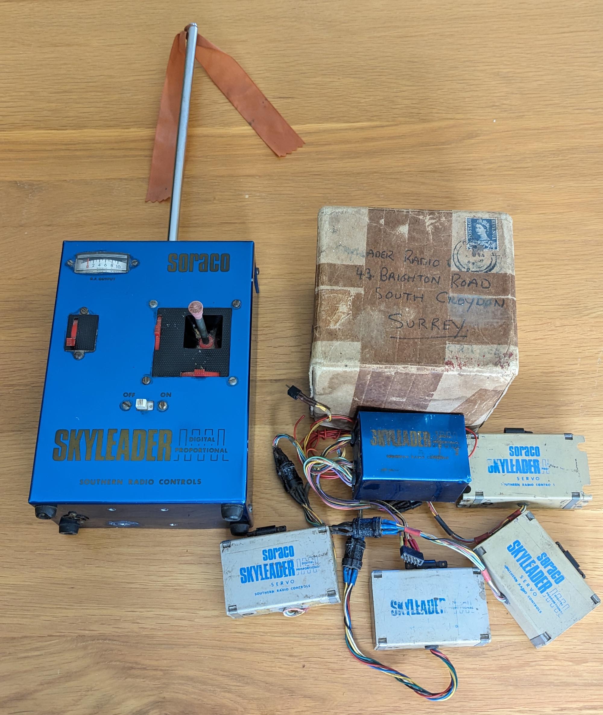 Where possible I always like to have complete sets for my R/C collection, but for some sets like my Soraco Skyleader 3+1, I assumed I'd never find a matching Rx and servo's. But then a flight pack appeared on eBay and there was no way I was going to miss that. So now I have the complete set of the first Skyleader when they were anodised blue and not yellow.