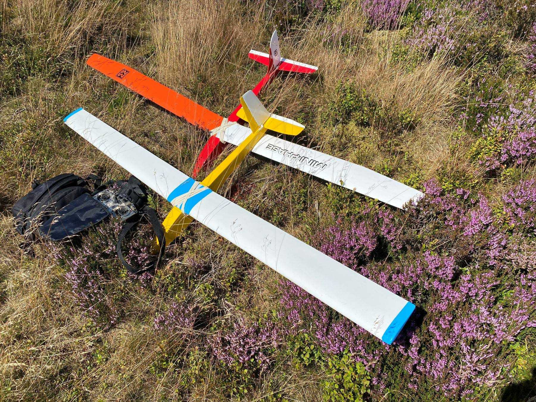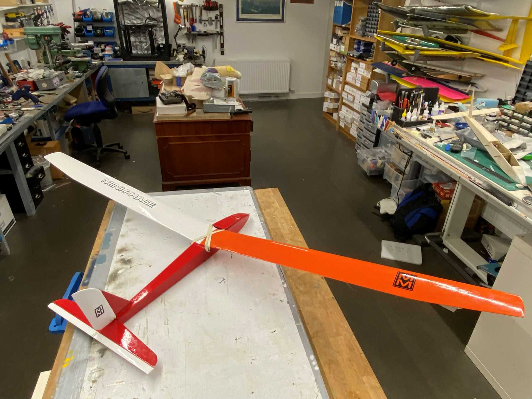 The mystery glider, which I've named Mini Phake, due to the similarity with the Mini Phase fuselage, has a larger rudder and more throw and that also flew beautifully, albeit with a tendency to pitch down a little in a sharp tur. Perfectly controllable though and with the excellent lift was way up in the bright blue sky in seconds. Both models are a great addition to the fleet and will be definite inclusions in the first team for trips to the slope.