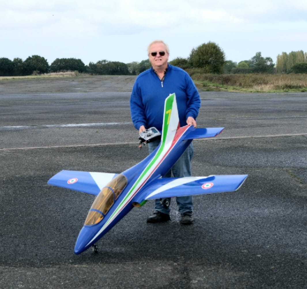 The jet is an all-moulded Aermacchi MB 339 in Frecce Tricolori colours fitted with flaps and retracts, Turbine is a JetCat P80SE with approx 10 kg thrust, it has 2 litre tank and runs on a 5% oil/kerosene mix and gives a safe flying time of around 8 minutes, there isnt a category for jets on Mode Zero, so thought I best post it here??