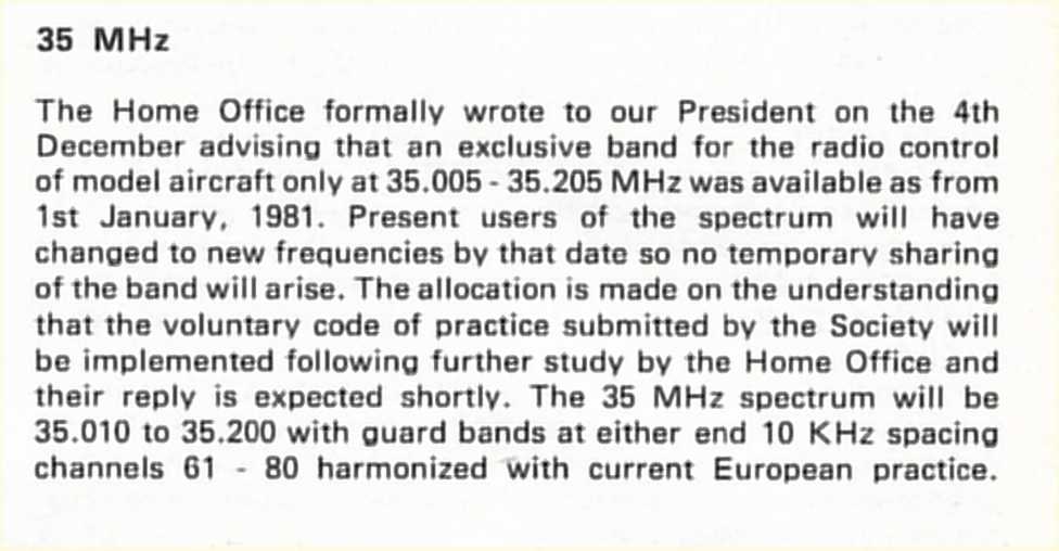 Someone was asking when model flyers were allocated the 35mhz band, but I cant find the query now.