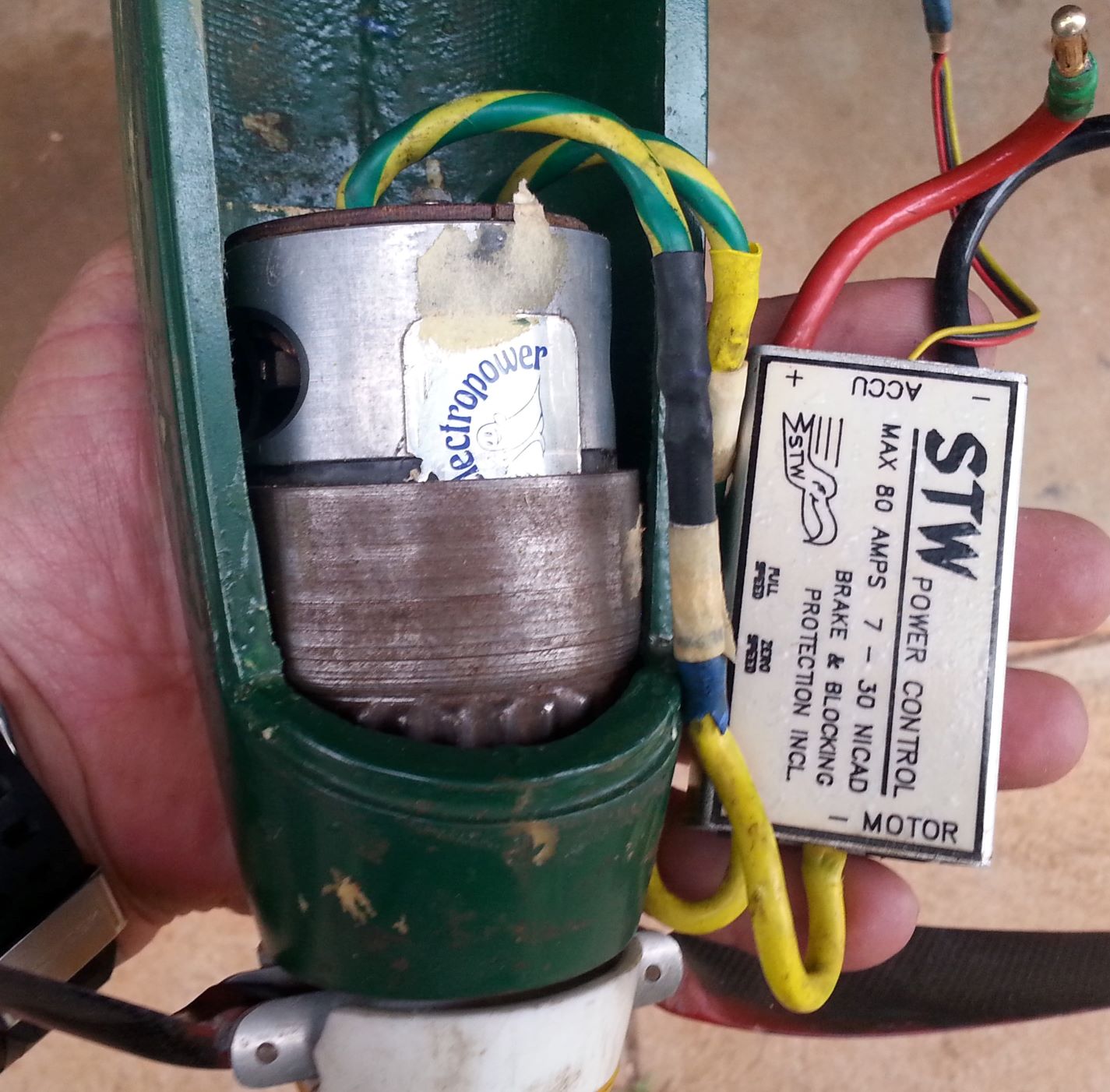 These last pics are of my Geist 150 (1500w) direct drive motor & STW speed controller as fitted in my "A" model at the 1986 World Championships. It has 2 of the commercial spring steel flux rings as well as a second larger home made flux ring, 4mm thick