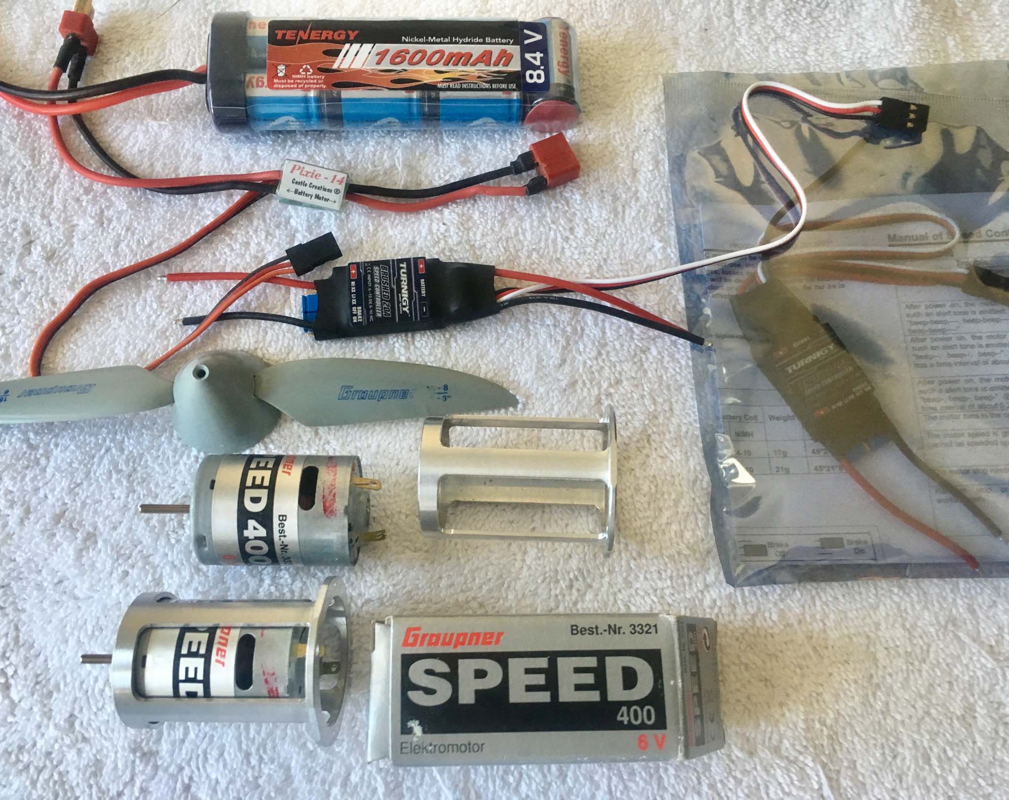 I run Graupner or CAM folding 6 x 3 props that were available here in the US in many years ago from a now defunct outfit called Hobby Lobby (not to be confused with the chain of craft stores by the same name) on my 6v direct drive speed 400 motors. I have run all types of battery chemistry. I still have some 7 cell 1600 mah Nimh packs that weigh about the same as the original 500/600 mah Nicad packs because they are just right in terms of ballast and noseweight for my Skimmer 400 electric glider. The speed controllers I have are Castle Creations, Great Planes, and some new ones from Turnigy.GarydNB wrote: 04 Mar 2018, 04:29That's very interesting...can you tell us what battery/speed controller/ prop setup you're using with those? I've got loads of 'empulserudder wrote: 04 Mar 2018, 01:28 I still fly 6v Graupner speed 400 motors direct drive. After all, they're practically "vintage."