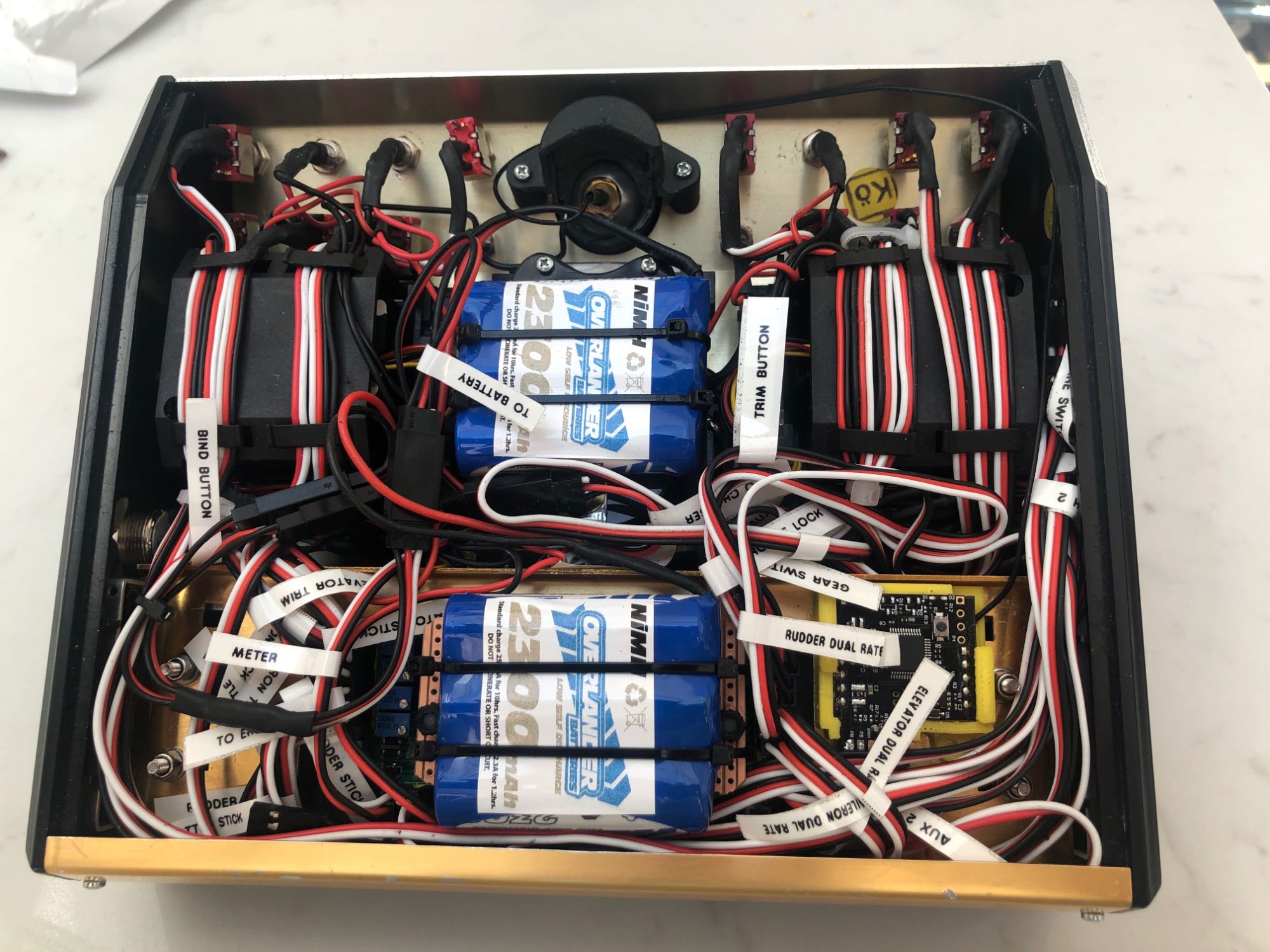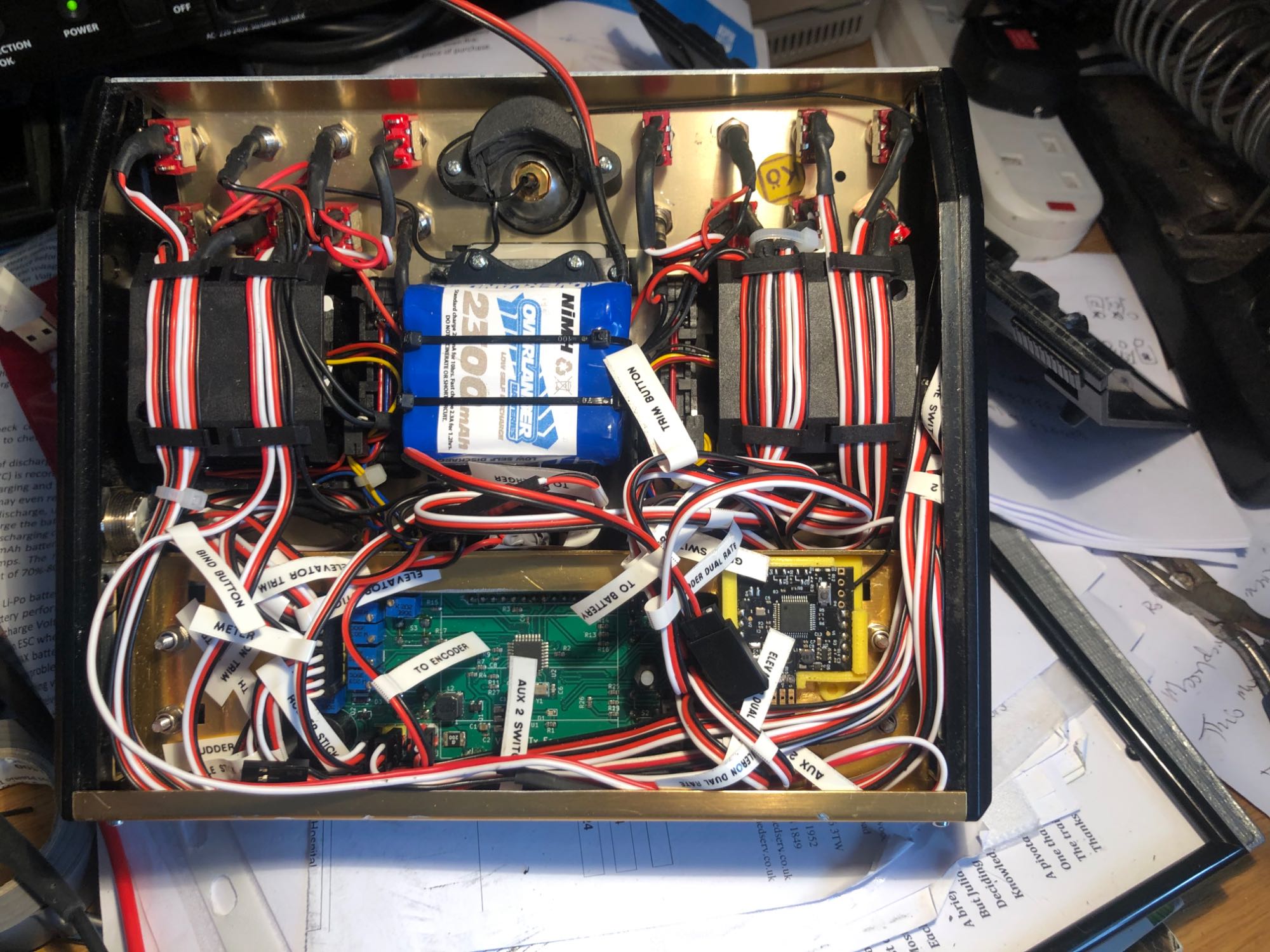 Lemon RF module was added and 6S NiMH battery installed as 2 x 3S packs to fit into the space available. Various switches, buttons and LEDs added to provide the necessary controls were added in the top panel.