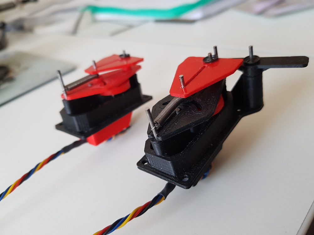 The recoder design is such that all adjustments if required would be done at the transmitter using travel volume, in fact the best way to set it up is to program elevator and throttle to very low travel. Then, with the sticks at neutral and with the linkages made and the surfaces flapping (only slightly at this stage), increase the elevator throw to give a rapid oscillation and just a few degrees of rotary movement on 'down' and maybe 240 degrees of rotary movement on 'up'. Then rudder travel volume is increased so that at full 'up' elevator and full rudder, the Rand is just short of cycling - ie it shouldn't ever fully rotate. GG is by its very nature a compromise, so some adjustment for best effect will be necessary - always aiming for as much movement as possible whilst avoiding 'cycling' on full throws.