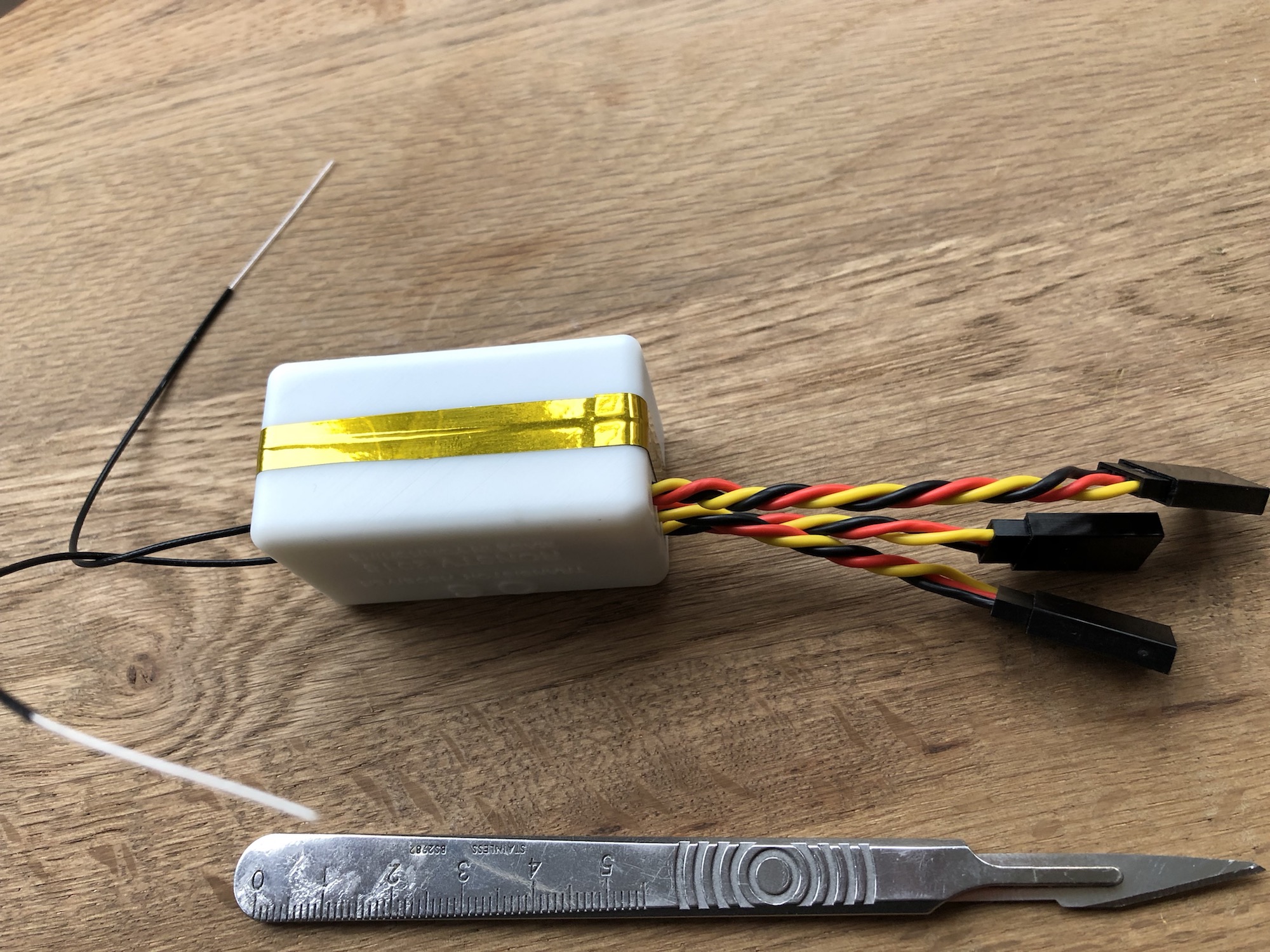 Thanks very much to Frank for the .scad file. I tweaked it a little bit to accommodate my v8 frsky receiver and put the "Made in Yorkshire" text on it. Printed in white laser resin its come out superb. very smooth and the text nice a crisp.