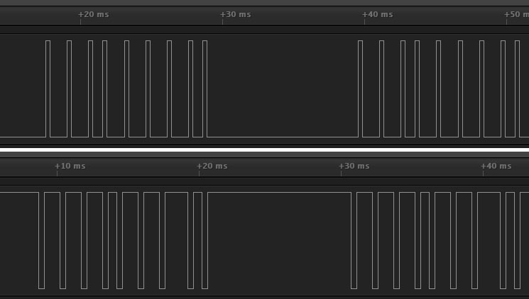 Hence I personally describe your first pic as 'standing ground, positive going PPM' and your second as 'standing pos, ground-pulsed PPM' which is a bit of a mouthful. JR is generally 'standing battery pos, ground-pulsed PPM'. Then there's 'standing logic pos, ground-pulsed PPM' and vice versa, with 3v3 and 5v variations. All these descriptions are further confused by open-collector drive like Frsky, or almost-open-collector like futaba & hitec module ports, where the encoder doesnt provide any voltage at all, just a pulsed connection to ground. Futabas and Hitecs have opposing polarity on the trainer port and the module port, so you cant simply say Futaba PPM is pos or neg - you have to say where you're looking!