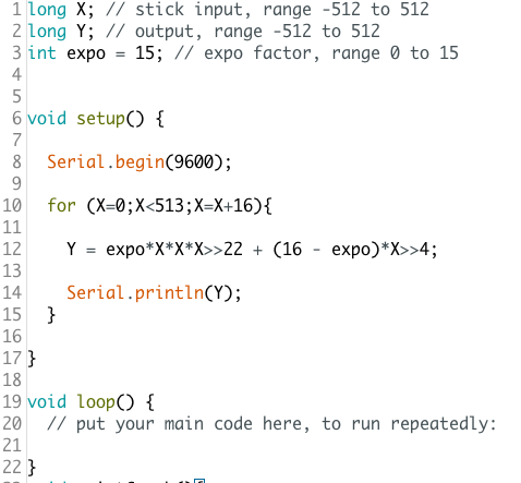 The formula is easy to implement using long integers, no need for floating point maths. I've helped Phil to replace the expo in his 7 channel encoder, his former expo used float variables and actual expo. I'll leave Phil to share his updated encoder when he is ready.
